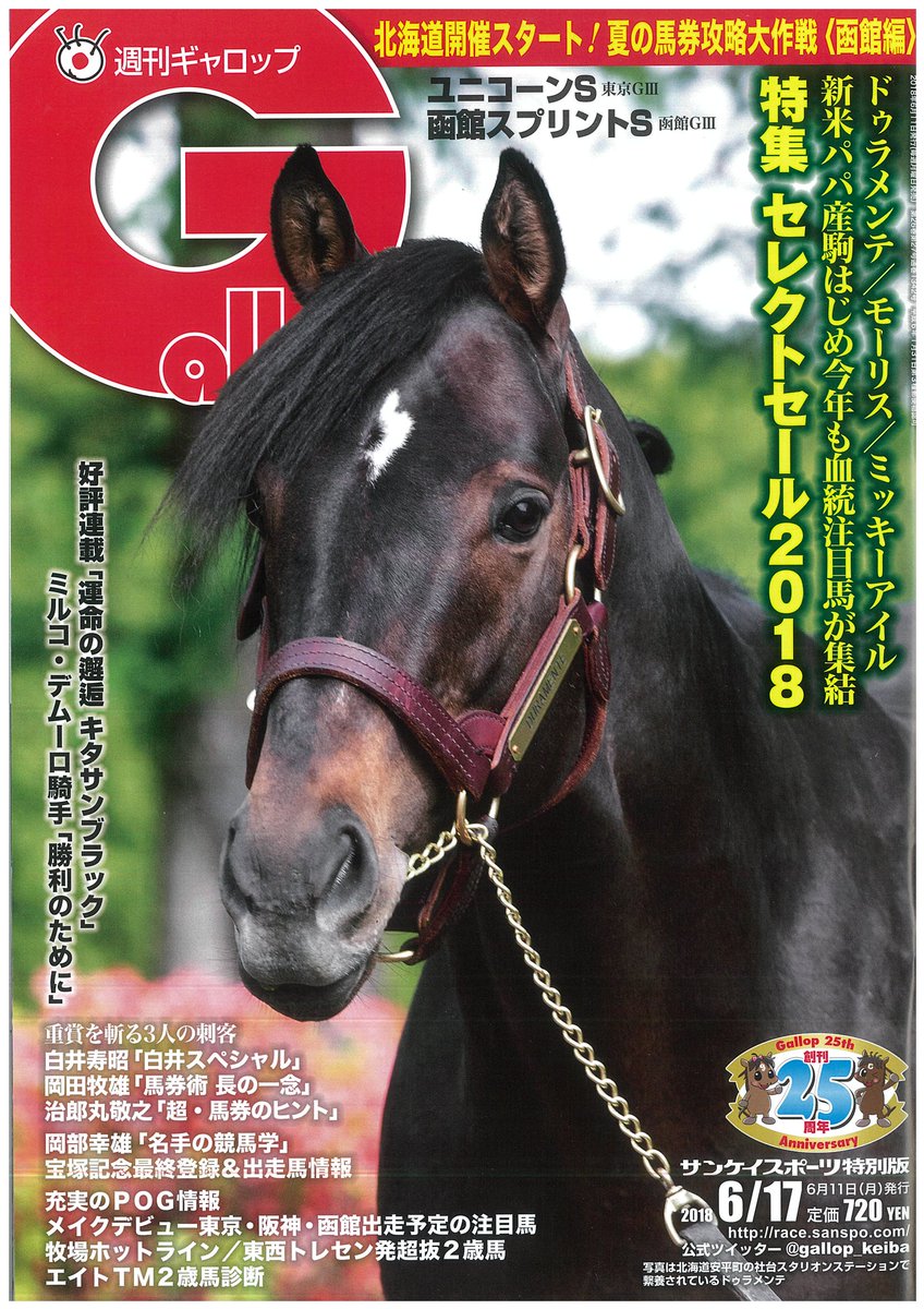 週刊gallop בטוויטר 本日6 11発売 ユニコーンs特集号 世界最大級のサラブレッド市場 セレクトセール ドゥラメンテ モーリスの初年度産駒や ディープインパクト産駒 ロードカナロア産駒など上場予定馬を紹介します いよいよ北海道競馬がスタート 夏の馬券攻略
