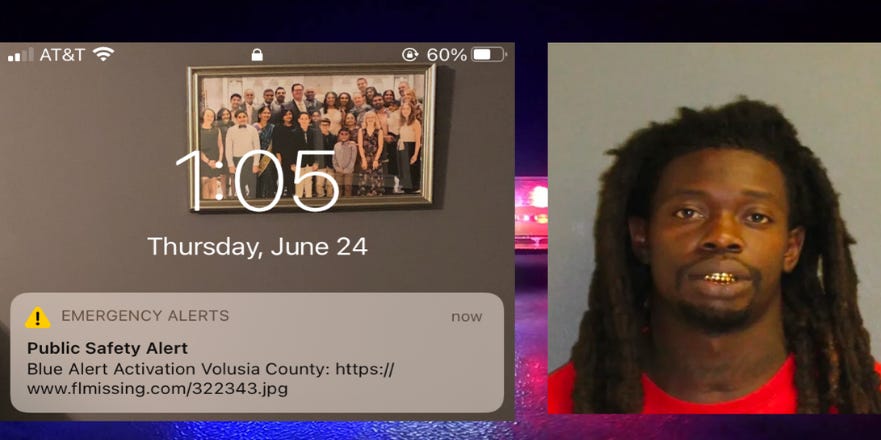 Florida is one of 36 states that have implemented this alert system as of June 2019. Patrick McDowell was last seen in the area of US. On Thursday a Florida Blue Alert was broadcast to residents phones and other digital devices on behalf of Volusia County concerning a manhunt for a suspect.